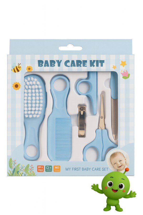 Este completo Baby Care Kit incluye todo lo necesario para mantener la higiene diaria de tu bebé de forma segura, cómoda y práctica. Contiene cepillo de cerdas suaves, peine, tijeras con punta redondeada, cortauñas y lima metálica, todos fabricados con materiales libres de BPA y diseñados especialmente para manos pequeñas y piel sensible.